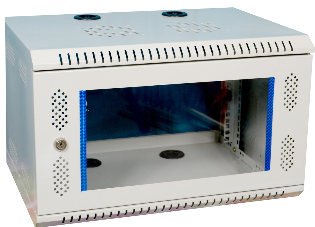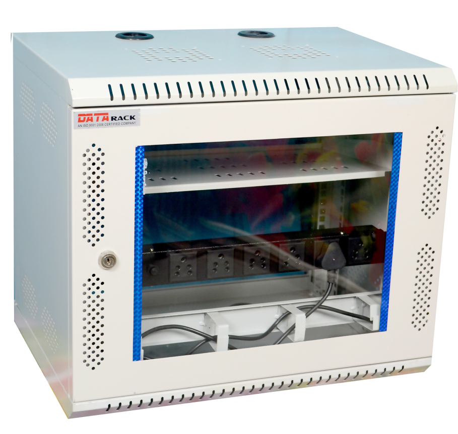 Configuration will be for standard racks are welded frame with 4 pillars of 7 folded profile welded to top and bottom panel. 4 folded profile depth rails to additionally support the rack. Removable side panels partially vented for better air circulation. Vented top cover with fan mounting provision, Front Glass or perforated Metal door with lock and key and back Vented or perforated metal door with lock and key. Free standing on floor with 4 No. castors wheels, 2 No. with breaks and 2 no without breaks. Levelers or Plinth can be provided on request.